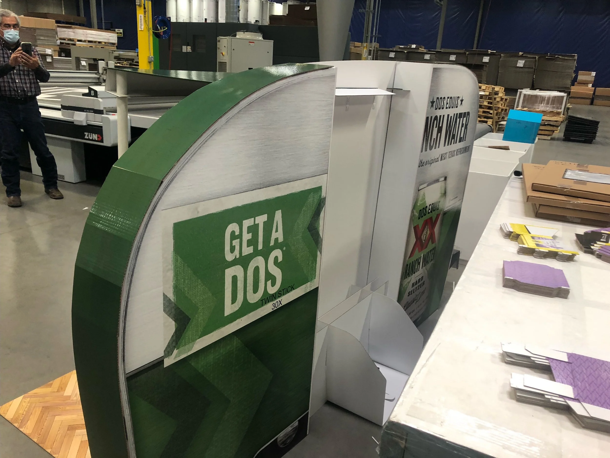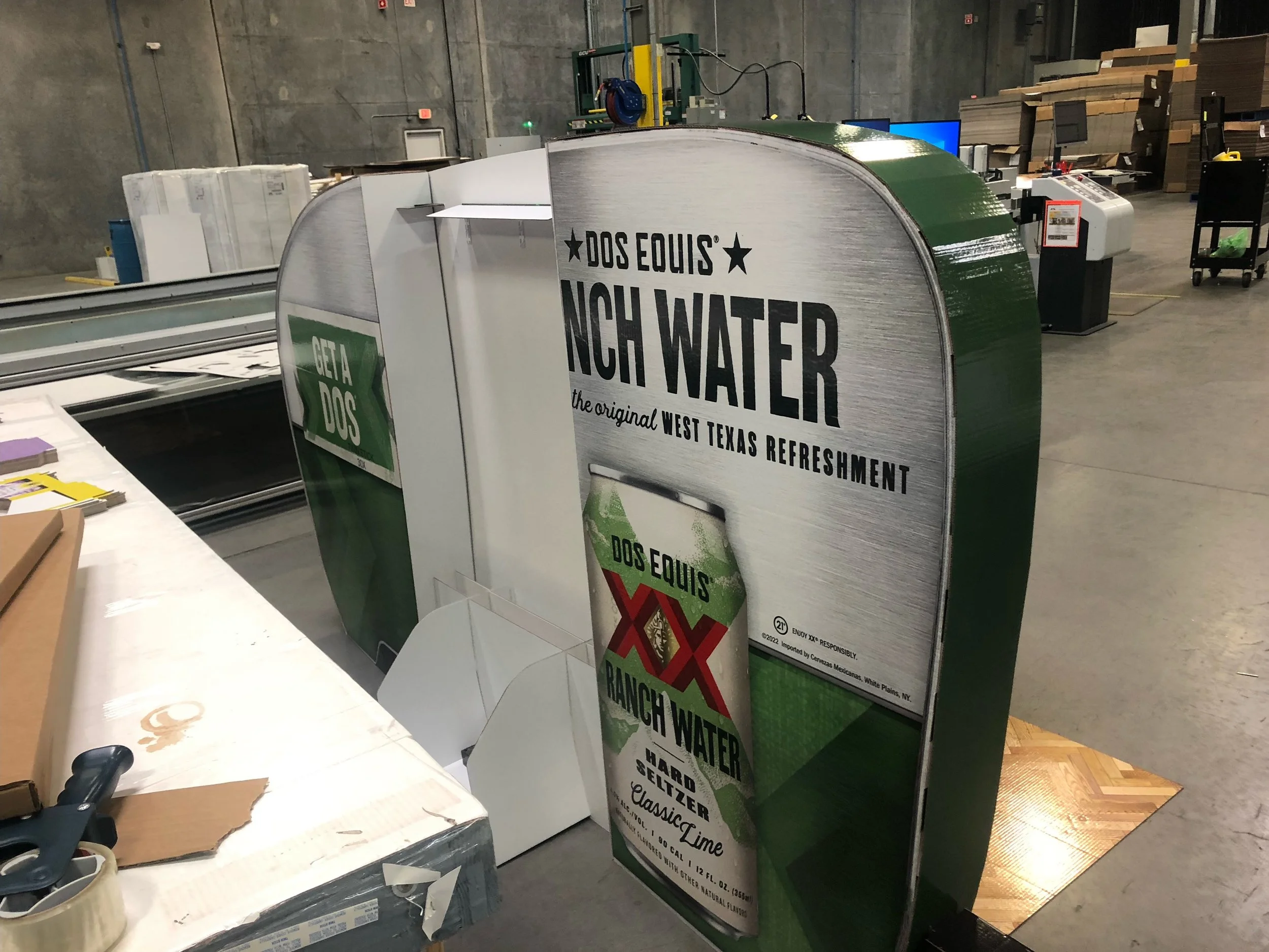 This oversized mass display for Dos Equis Ranch Water was a near replica of an actual trailer RV image given to us. It included black display poles for the posts and a floor and awning that extended out from the front of the display. This project was designed and produced in partnership with our customer, Northern Media, Inc. Find out more about them at NorthernMediaInc.com